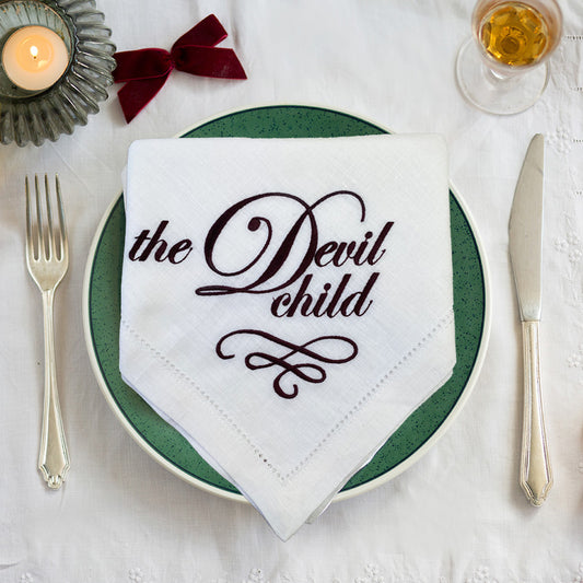 The Devil Child Embroidered French Linen Napkin