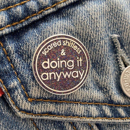 Scared Shitless & Doing It Anyway Enamel Glitter Pin