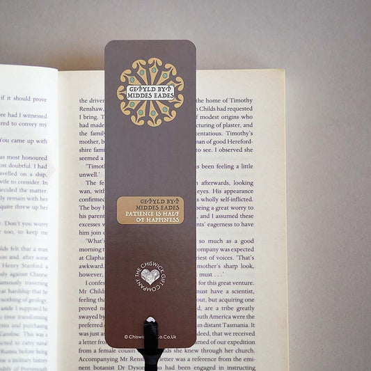 Old English Bookmark - Patience Is Half Of Happiness