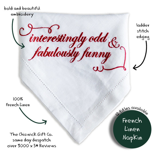 Interestingly Odd & Fabulously Funny Embroidered French Linen Napkin