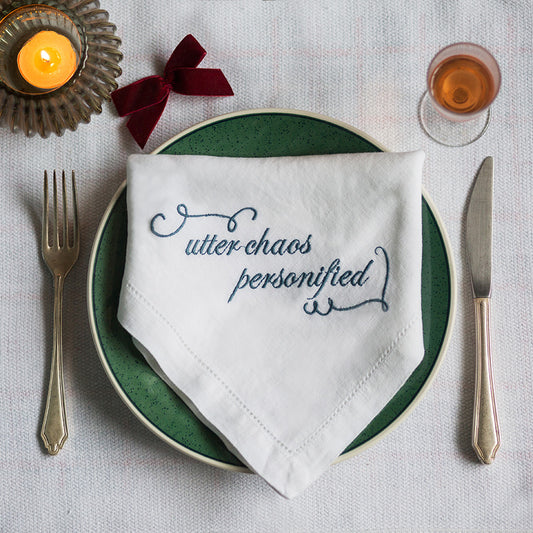 Utter Chaos Personified Funny Embroidered French Linen Napkin