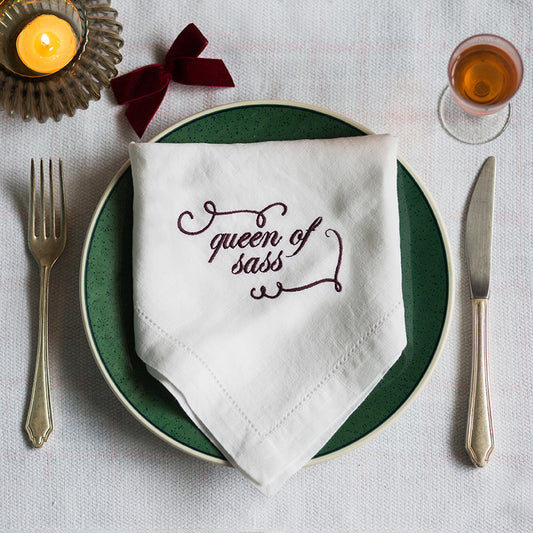 Queen of Sass Funny Embroidered French Linen Napkin