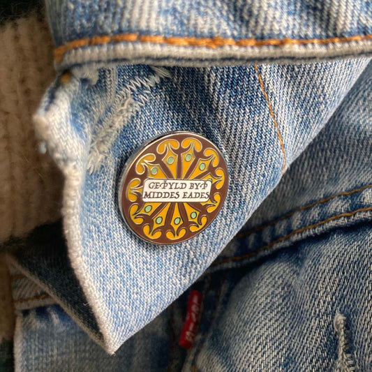 Old English Enamel Pin - Patience Is Half Of Happiness