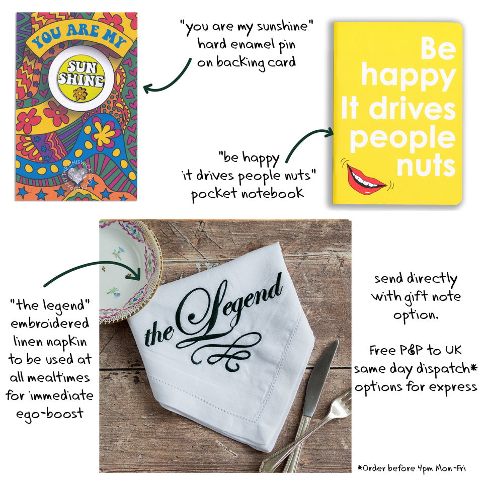 "The Legend" - Embroidered Linen Napkin (£17): For someone who deserves a seat at the head of the table.
