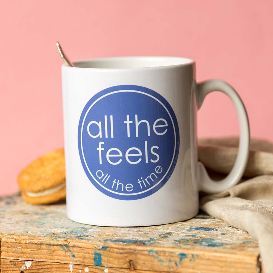 This mug featuring the slogan 'All The Feels' makes a perfect 'pick me up' or 'just because' gift for a friend who might be feeling a little overwhelmed for whatever reason.