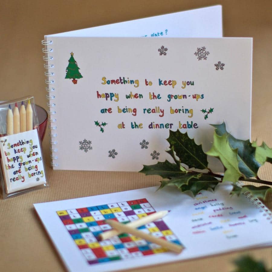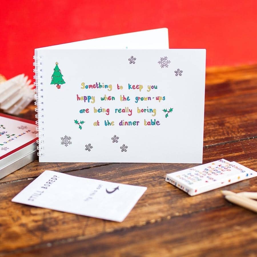 This Christmas activity book titled ’something to keep you happy when the grown-ups are being really boring at the dinner table’ is a great way of keeping children entertained over the festive period.