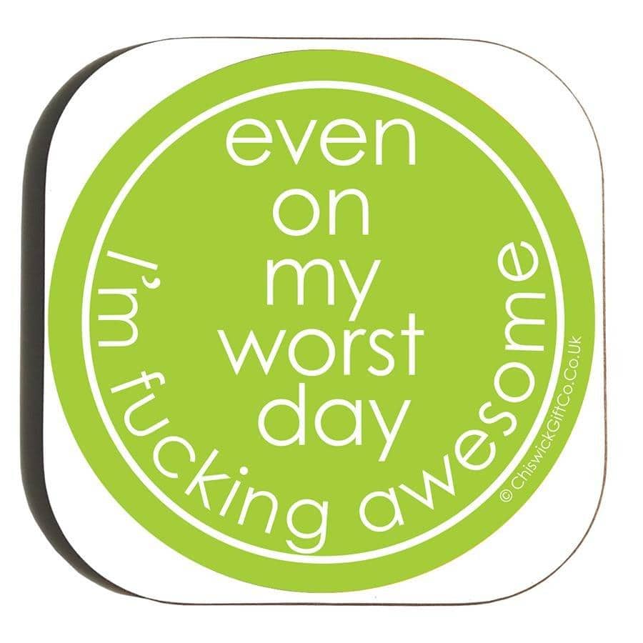 This coaster titled 'Even on my worst day I’m fucking awesome' is a great way to remind someone how amazing they are.