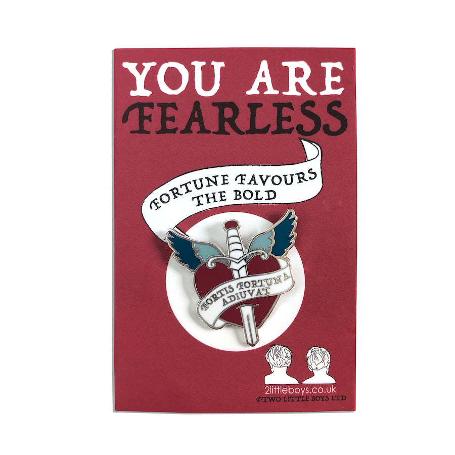 This pin badge says 'Fortis Fortuna Adiuvat' which translates from Latin to English as 'Fortune Favours the bold' (or brave sometimes depending on the translation) which is the perfect message for anyone who is proud of being bold and brilliant as they make their own way in the world.