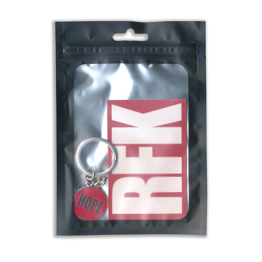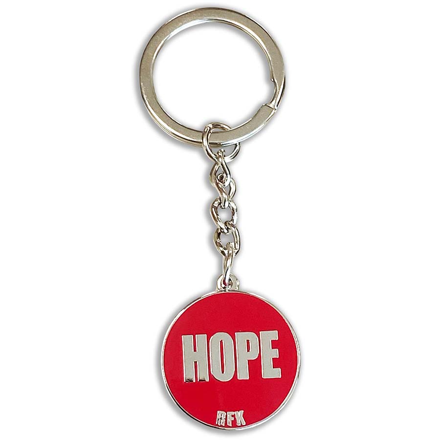 This enamel keyring features the word Hope and quotes from Robert F. Kennedy (RFK) on the accompanying card plus the letters RFK on the reverse of the card.