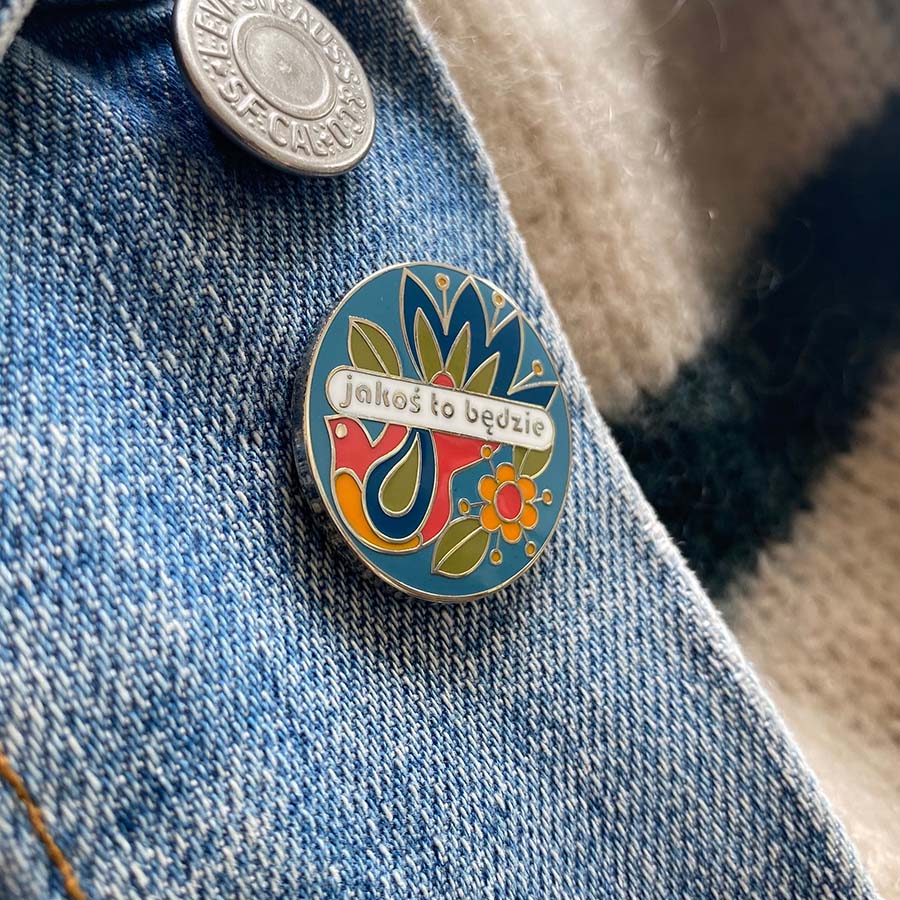 This enamel pin says "jakoś to będzie" in Polish which translates as "it will all work out" in English which, given that we're stoics around here, says it all really!