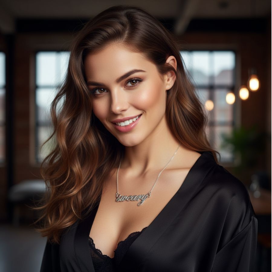 Comes ready attached to a 16" Sterling Silver chain which is a medium so should hang nicely. If you're attaching both clasps to one end so that the word hangs down you lose the length of the word so sits higher up the décolletage.
