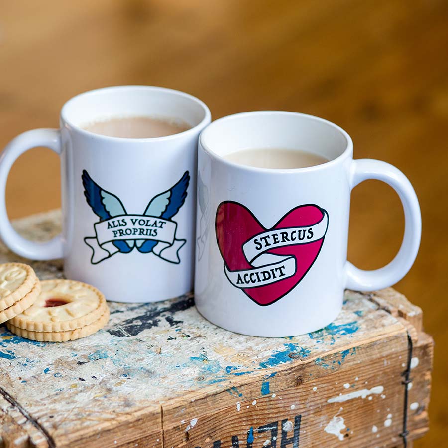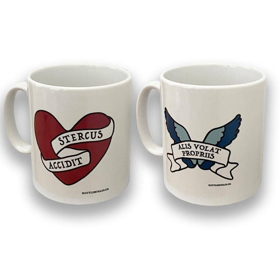 Our two bestselling latin phrases on mugs - "She Flies With Her Own Wings" and "Shit Happens" in Latin makes a perfect gift for any awesome woman.