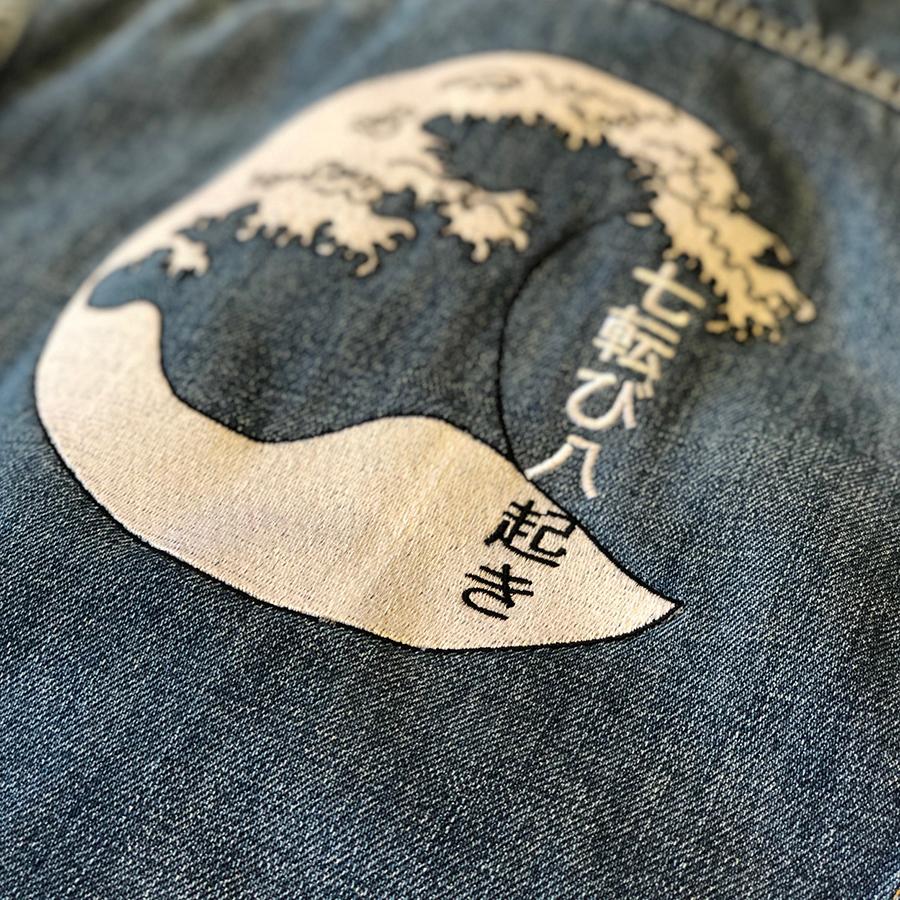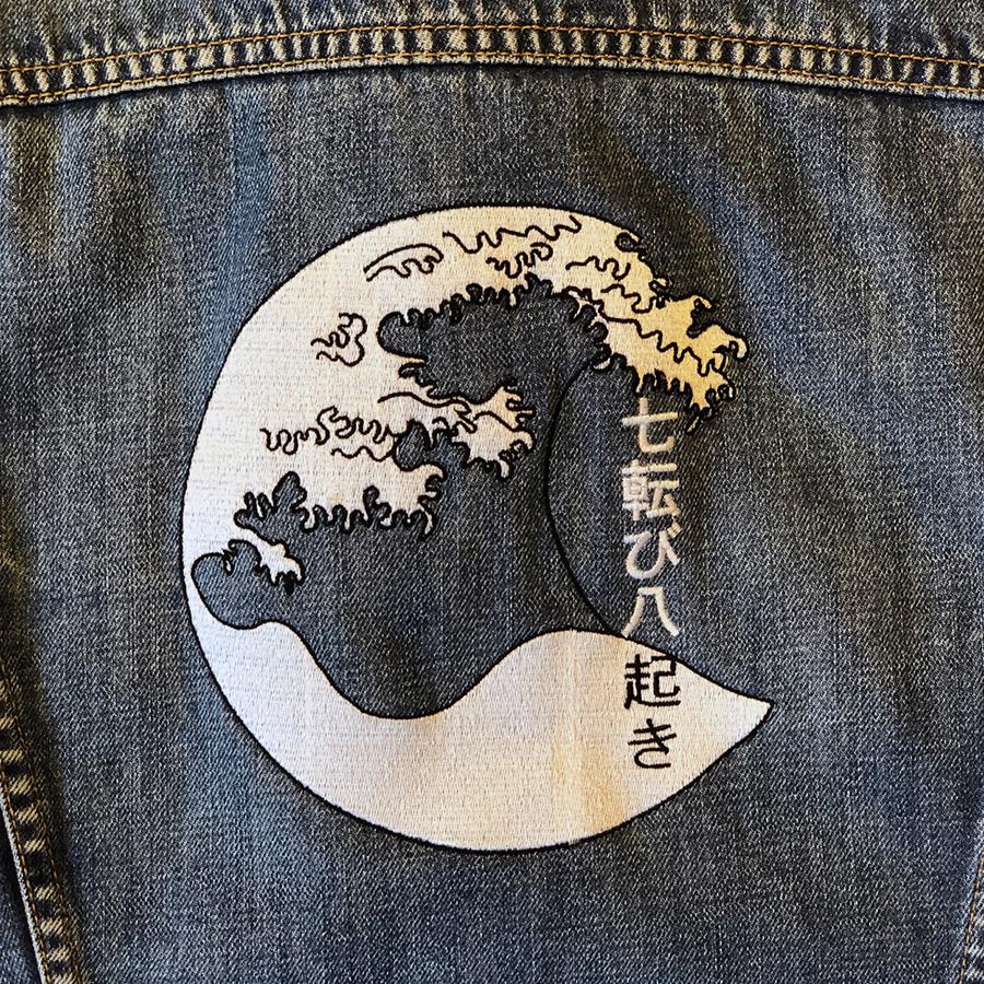 Never Give Up - Fully Embroidered Japanese Motto with Great Wave - Vintage Levi's Denim Jacket