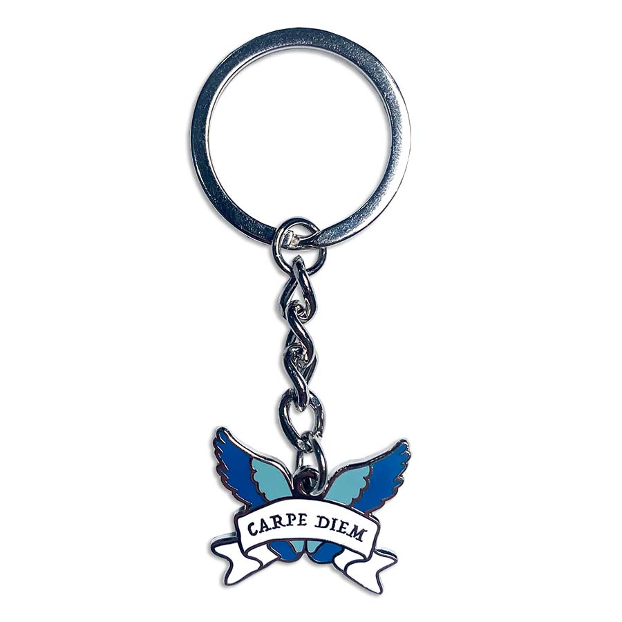 This keyring says 'Carpe Diem' which translates from Latin to English as 'Seize the Day' which is probably the most well known Latin motto, and it's one that everyone will recognise as a kind of call to arms to make the most of your time, go for your dreams and to generally be on the front foot.