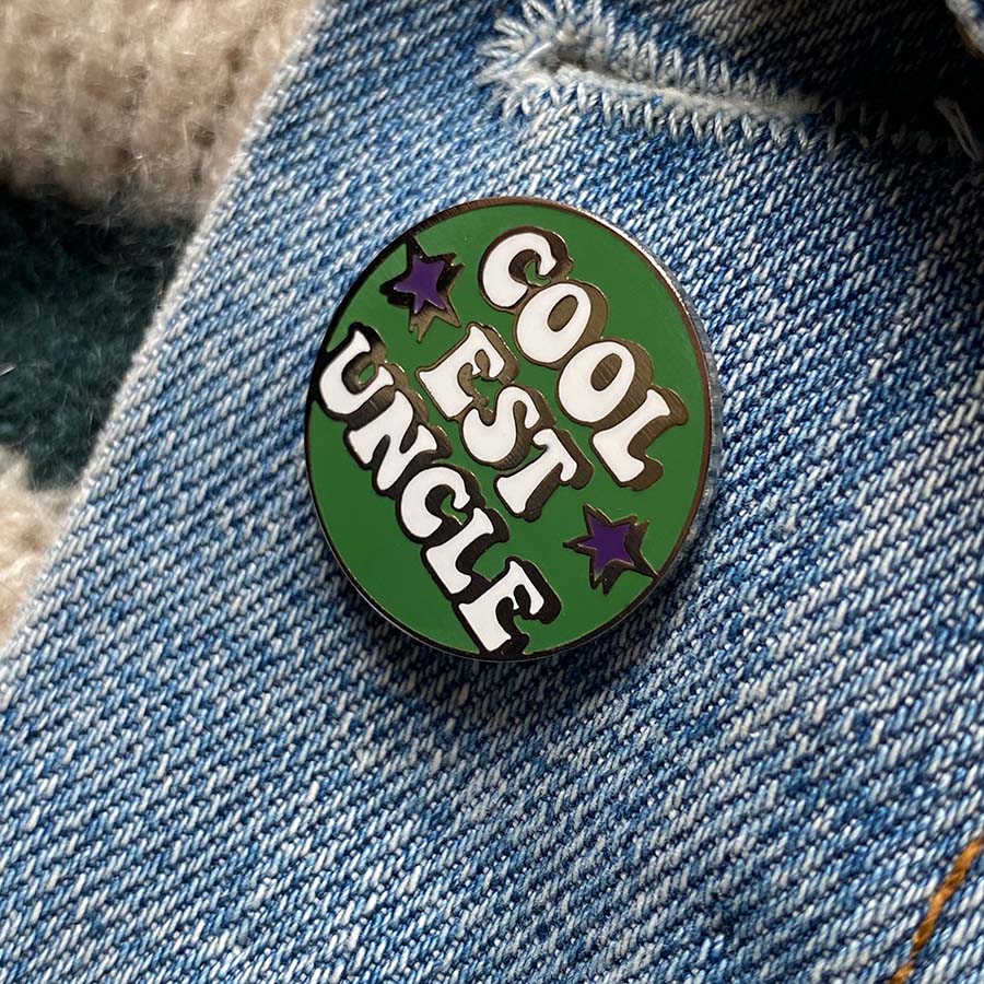 Featuring 1960s inspired design style the backing cards for this range all say You Are My and this enamel pin says Coolest Uncle.