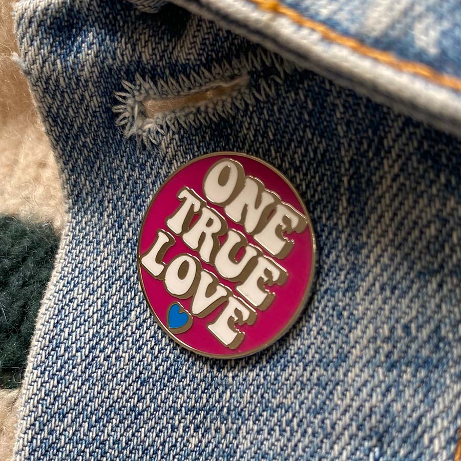 Featuring 1960s inspired design style the backing cards for this range all say You Are My and this enamel pin says One True Love.